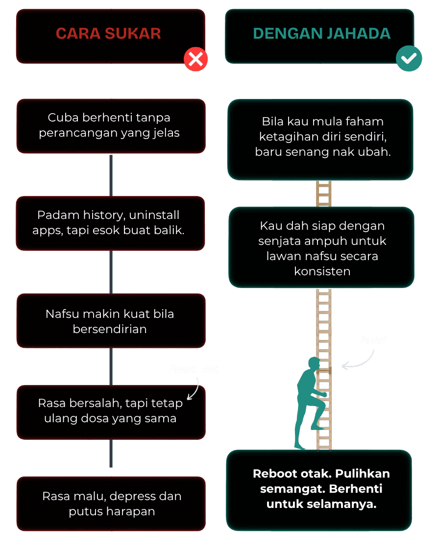 Jahada bantu kau faham trigger dan bina habit berkesan untuk bina kekuatan sebenar dari dalam.